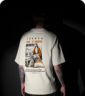 Escolha de malha, modelagem, tipo de estampa e acabamento. Cada peça é pensada para representar sua marca.